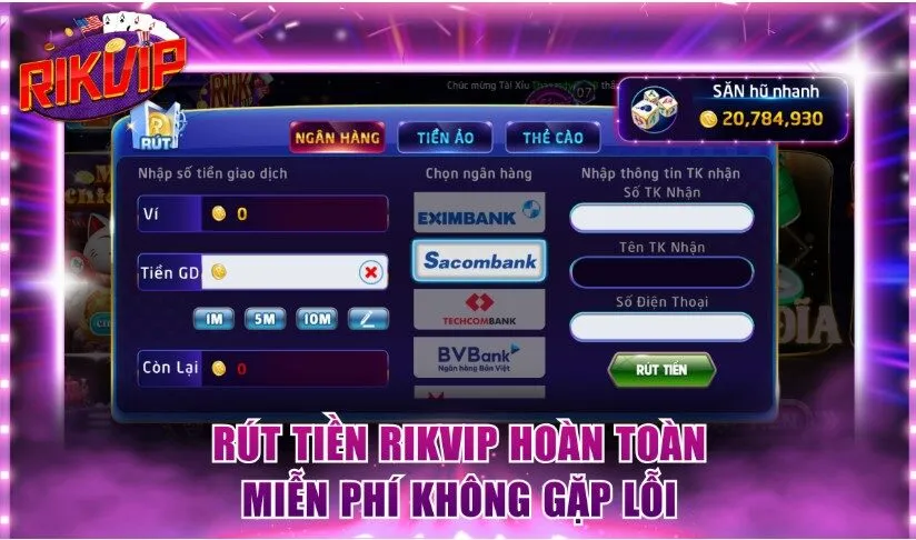 Rút tiền Rikvip hoàn toàn miễn phí không gặp lỗi