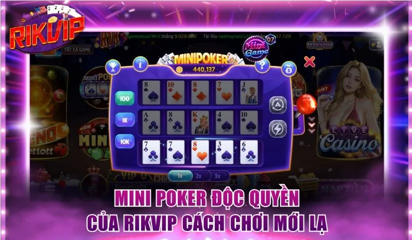 Mini Poker độc quyền của Rikvip cách chơi mới lạ